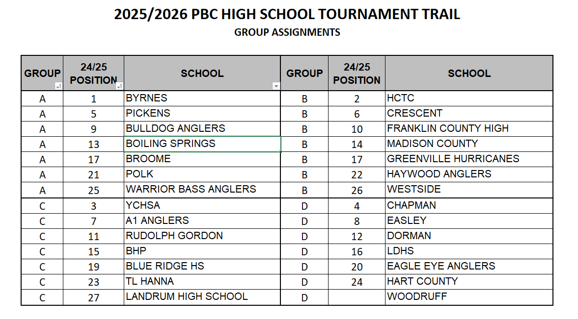 2025 - 2026 Palmetto Boat Center High School Tournament Trail