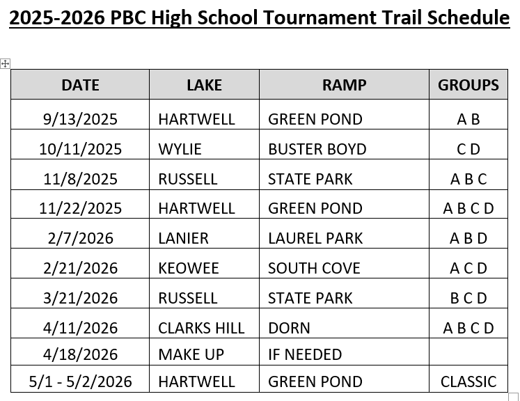 The schedule for the 2025-2026 Palmetto Boat Center High School Tournament is out!